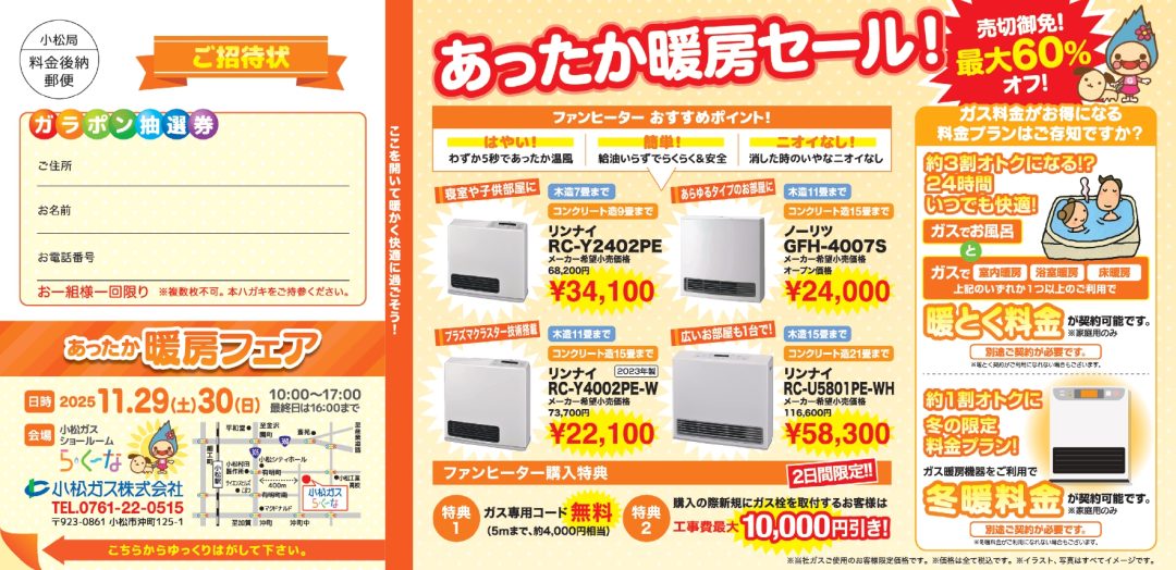 小松ガスをお使いのお客さまはご招待状を11月検針時に配布しております。